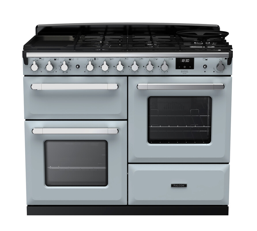 The Estel Deluxe range cooker embodies a classic and timeless aesthetic, blending retro and traditional elements with clean geometric lines and signature chamfered edges. Its design is inspired by utility and durability, offering a practical yet stylish option for those who value timeless functionality.