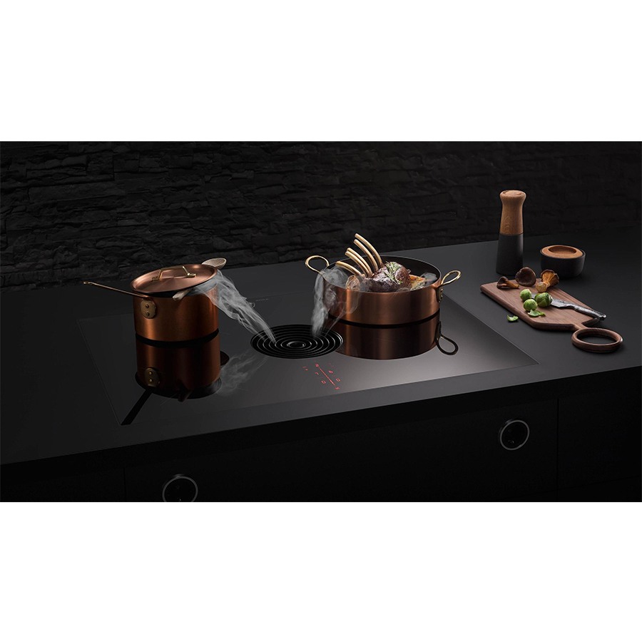 A compact system like never before: minimalist, flush design, highly elegant, extremely quiet and intuitive. The newly developed, central sControl control panel guarantees use of the full depth of the cooktop. Operated by simply sliding your finger up or down, the controls are more unique and instinctive than ever before. Give it a whirl. Your kitchen’s trademark.