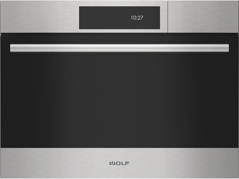 Convection with twelve cooking modes: steam, reheat, auto steam bake, convection, convection humid, convection steam, Wolf gourmet, slow roast, recipes, my recipes, keep warm, descale and cleanse