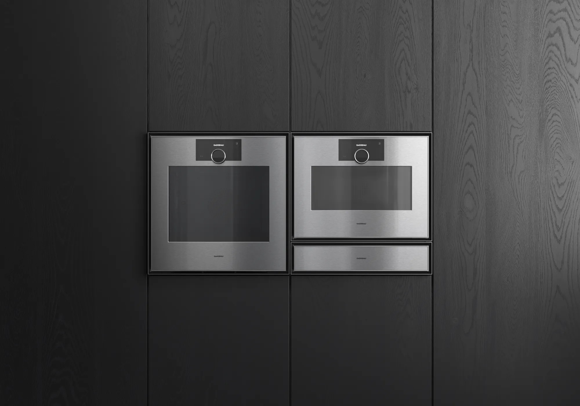 Warming drawer Expressive series, 60cm wide, 14cm high, stainless steel behind smoked grey glass