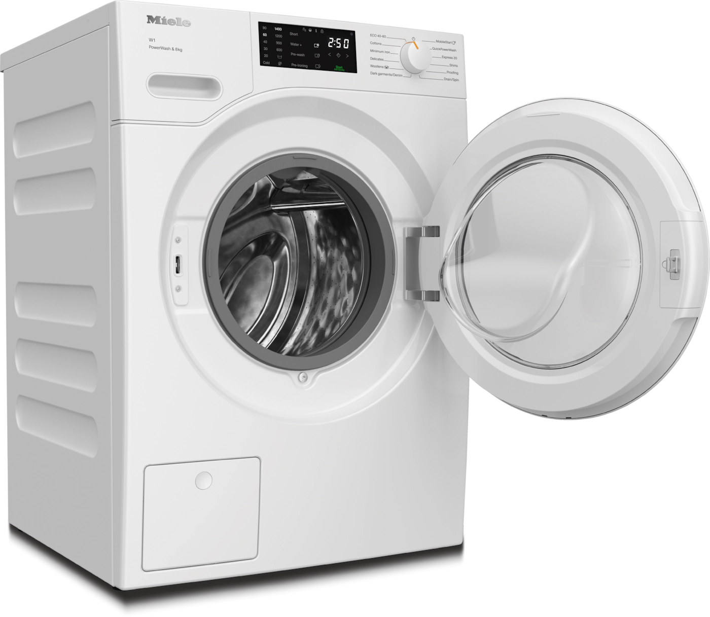 W1 front loader washing machine: A -20 %* I 8 kg I 1400 rpm I QuickPowerWash I Miele@home I CapDosing