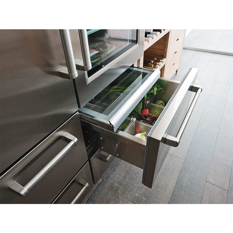 Locks in temperature and humidity with soft-close door hinge and magnetic seal on doors and drawers
